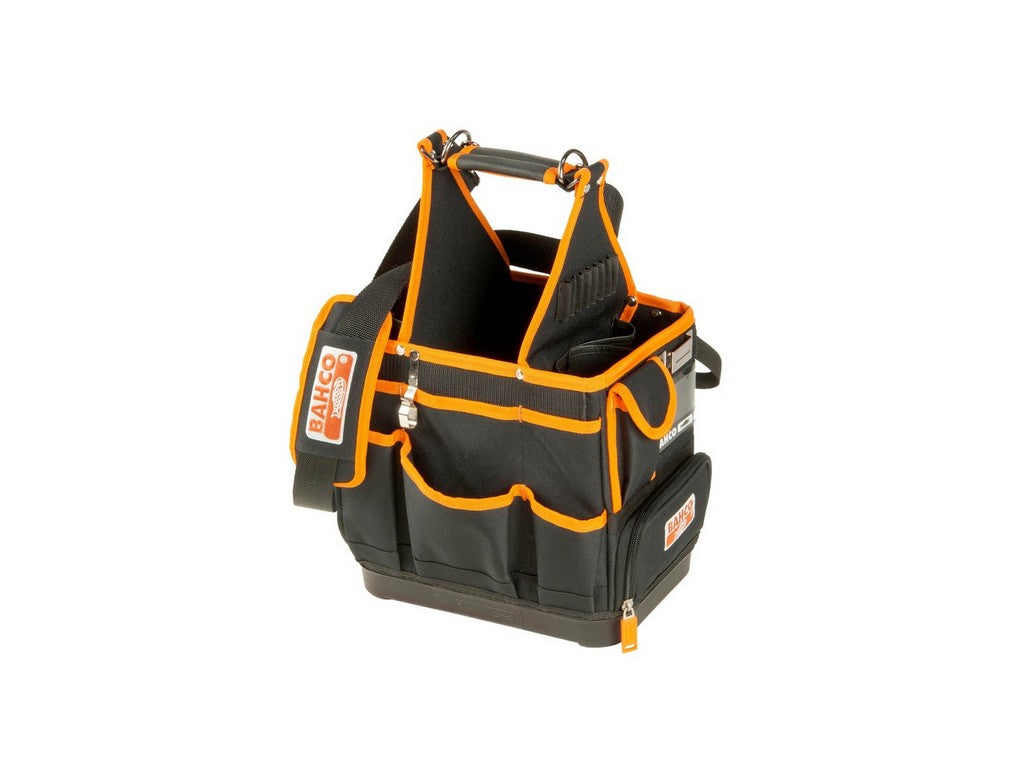 . Åben værktøjstaske, som er specielt designet til elektrikere. Fremstillet af en kombination af 600 og 1680 denier polyester. Flere opbevaringsmuligheder med elastik til skruetrækkere foran og bag. Stort, centralt opbevaringsrum til stort værktøj eller materialer. Stor lomme nederst, der indeholder en plastboks til små forbrugsvarer: skruer, møtrikker, skiver, klemskruer. Lommer med forskellige højder i begge sider giver ekstra opbevaringskapacitet. Praktisk lomme til målebånd, telefon eller kort. HD-forstærket greb giver tasken stabilitet og styrke. Polstret skulderrem med kliktilpasning. Åben værktøjstaske med nem adgang. Komfortabel bærestrop og håndtag. Praktiske eksterne lommer til meget forskelligt værktøj. 100 % vandtæt og skridsikker hård bund i plastik giver styrke og beskytter mod slag. 1680 denier polyester i områder, hvor der er stor risiko for skader fra spidser eller skarpe kanter