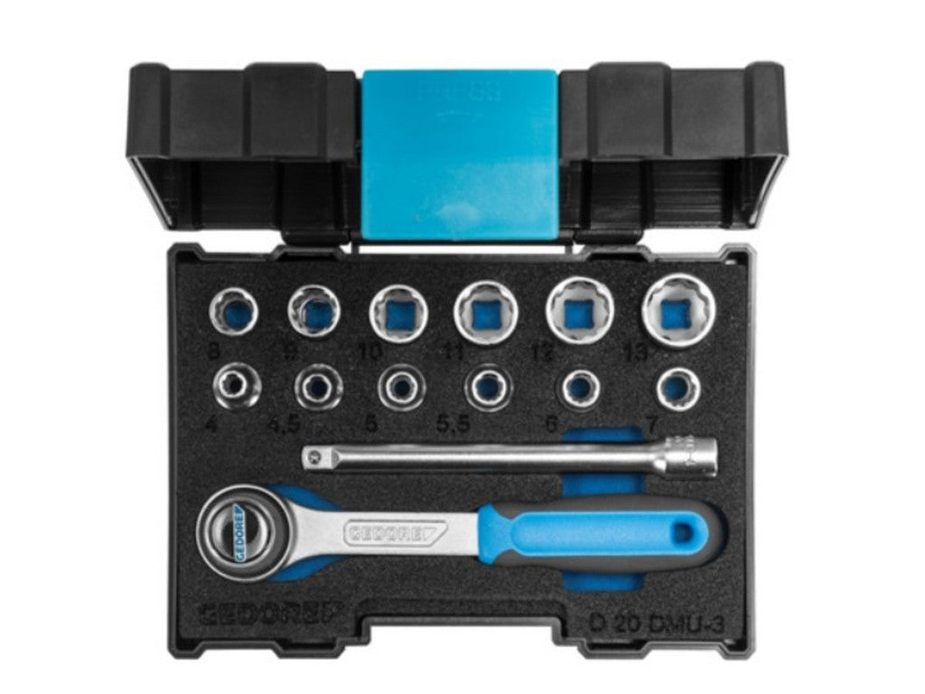 Gedore topnøglesæt 1/4" i plastboks 12stk toppe 4-13mm 1stk forlænger 1 stk skraldenøgle