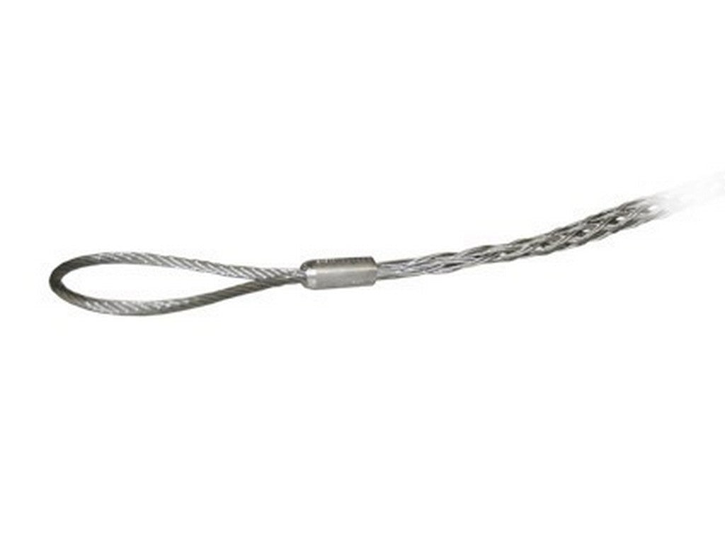 KATIMEX® offers flexible cable grips for underground cabling. Made with a highly flexible 19-strand double cord, these galvanized wire grips attach easily to cables. They come in various sizes for cables 10-180mm in diameter. Strands at the beginning of the grip are bound and pressed in a chamfered ferrule with an eye to prevent snagging. Tension is uniformly transferred along the mesh, preventing breakage. The working length, or nominal length, is the effective mesh length. Woven ends minimize injury risk. KATIMEX® provides custom solutions, manufacturing grips to specific lengths with optional cable eye stiffeners.