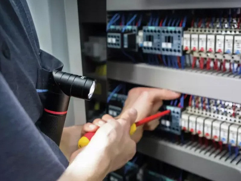The multifunctional flashlight provides light in the dark in three ways. With a built-in laser, UV and LED light, it is a universal tool. The LED flashlight function has two light levels, so you can adapt the light to the conditions and thus improve your field of vision. The practical holding clip and magnetic positioning option leave you free for other work. The flashlight can also be attached to most switch cabinets thanks to the built-in magnet. And the L-shaped, rotatable lamp head has variable light adjustment for the desired use. The built-in laser makes it easier to determine the position and transfer measurements, e.g. when installing lamps on the ceiling. The laser cannot be switched on accidentally, as it has a connection time of 2 seconds. The flashlight can also be used for technical inspections with the built-in UV light.