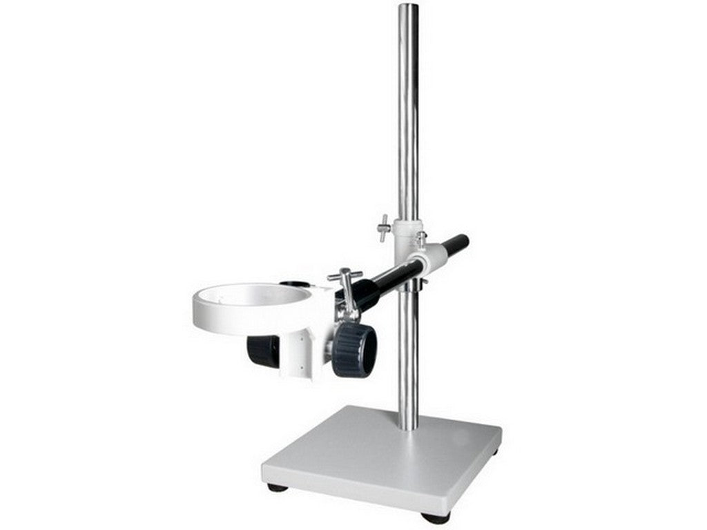 Articulated one arm boom stand with a 270 x 270 mm base, 610 mm and ø 29mm pillar, with coarse adjustment and orientable stereo head holder. Vertical post 780 mm.
