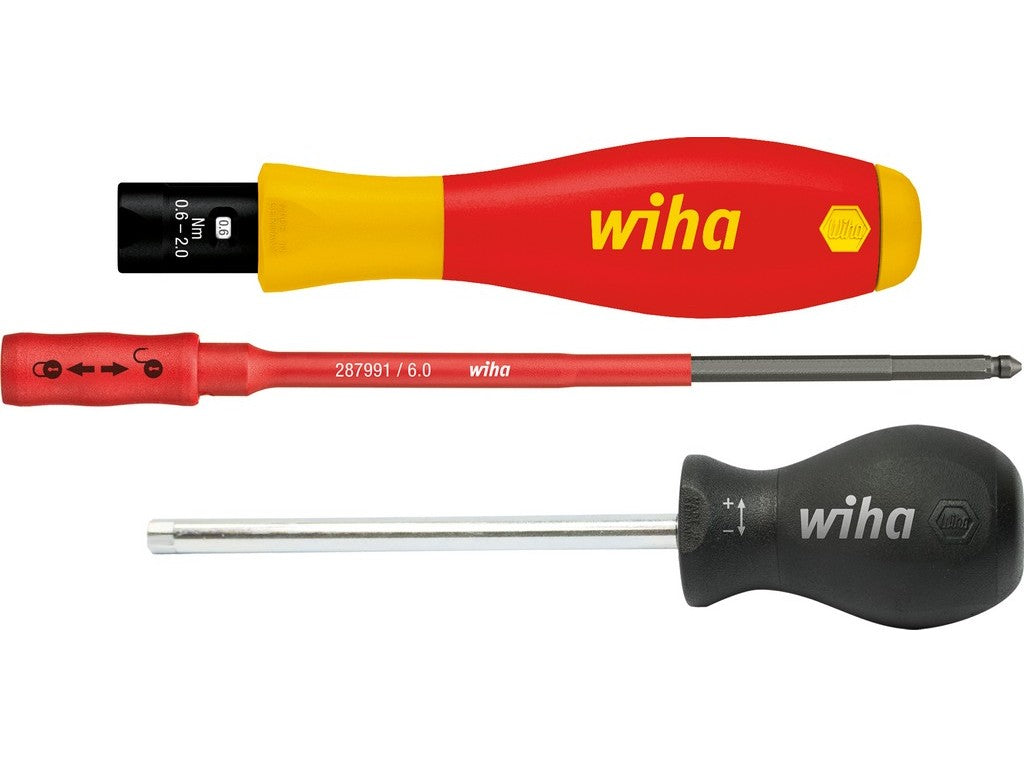 Full control over screw tightening and simultaneous safety in electrical applications is achieved with the fully certified TorqueVario®-S VDE torque system. The tool set includes an ergonomically shaped torque screwdriver handle with integrated numerical scale, a bit holder and the setting tool. All components are placed conveniently and clearly in a durable, high-quality bag. The torque screwdriver VDE covers a wide range of applications with the variably adjustable torque range of 0.8-5.0 Nm. Thanks to a clearly audible and noticeable signal when the torque is released, a process-reliable torque mechanism that protects against material damage and rework is guaranteed. With a precision of +/- 6%, the torque tool meets the requirements of DIN EN ISO 6789. The insulated ClicFix bit holder guarantees a secure retention of the 75 mm long slimBits as a result of a mechanical blade lock. In accordance with the international standard IEC 60900, both the torque screwdriver and the slime bits undergo an individual check and make it possible to work safely with parts that are under voltage up to 1,000 V AC. For controlled screwing in the vicinity of live parts up to 1,000 V AC, e.g. on automatic fuses.