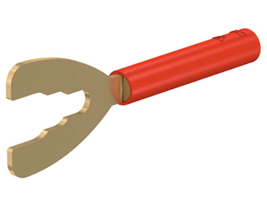 . Made of brass for permanent installation, e.g. for connecting screw terminals. Ø 4 mm rigid socket in insulator accepting spring-loaded Ø 4 mm plugs with rigid insulating sleeve.