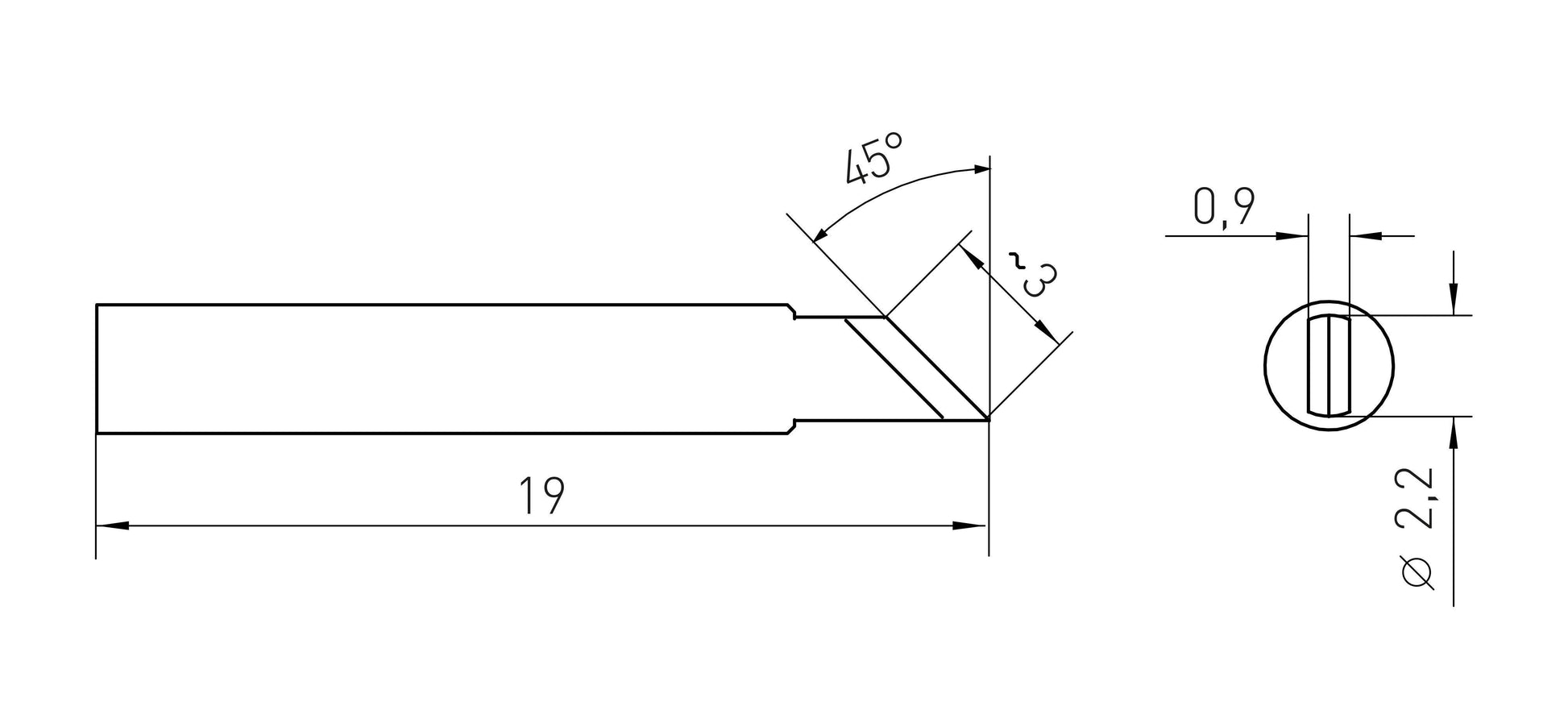 - Tipform: Knife (skråt snit 45°)