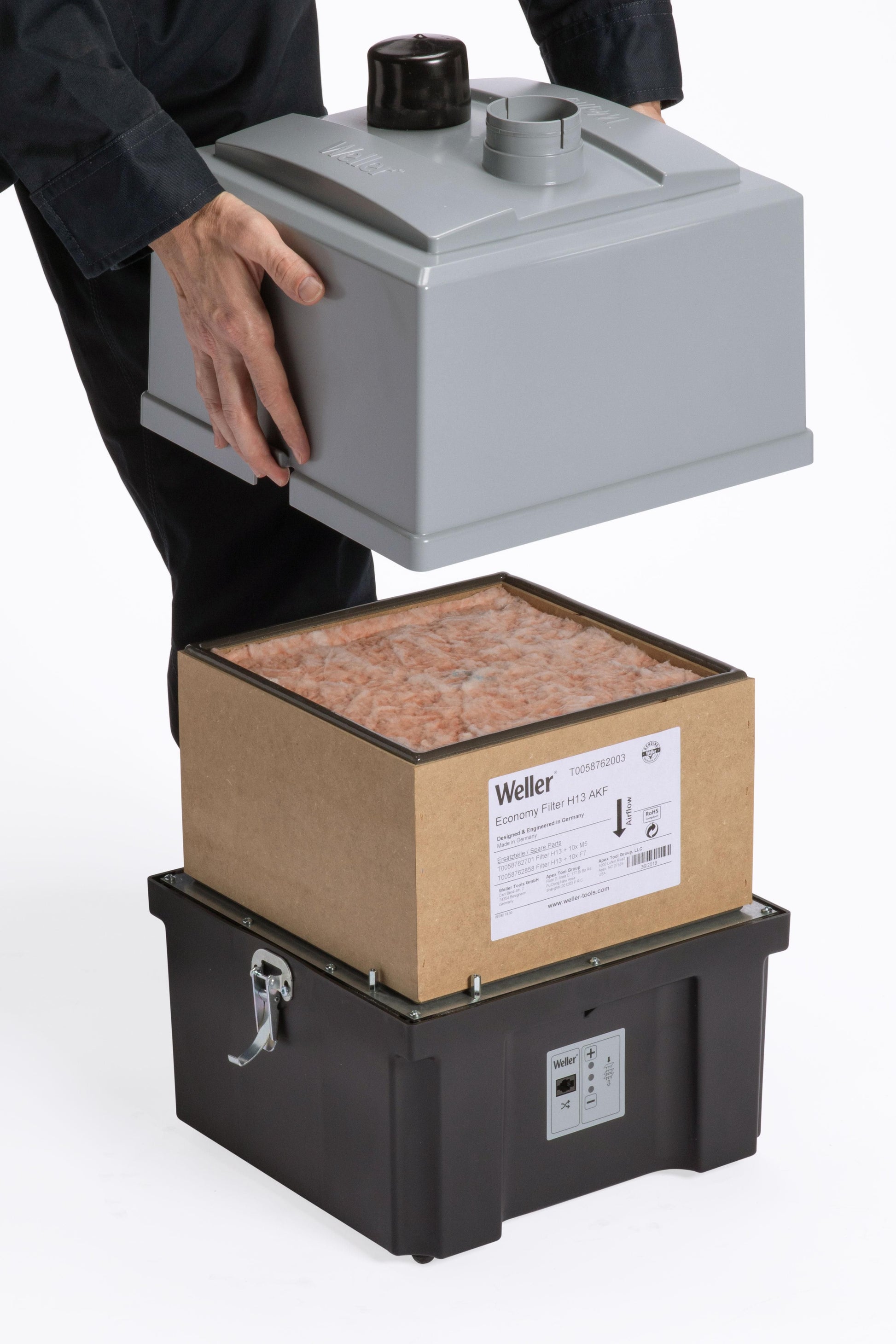 Breathe clean air without dangerous fumes and particles. Weller filtration systems are specially designed for continuous use in industrial work environments. The high quality HEPA H13 filters clean the air from hazardous vapors, particles and viruses. Therefore, recirculating the clean air back into the workplace ensuring a safe work environment. The small footprint design fits under the bench to free up the operator workspace. At only 53db or below, Weller Zero Smog filtration units keep the workplace quiet.