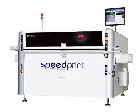 SP1220 Long Board Printer fra Speedprint håndterer PCB op til 1.220mm i længden med en nøjagtighed på 12,5 mikron. Den bruger fire fiducials til justering og har indbygget loddepasta inspektion. SP1550 leveres med 5 års garanti på dele som standard.