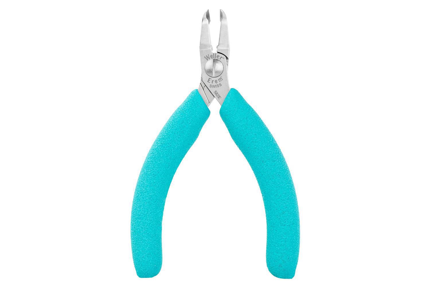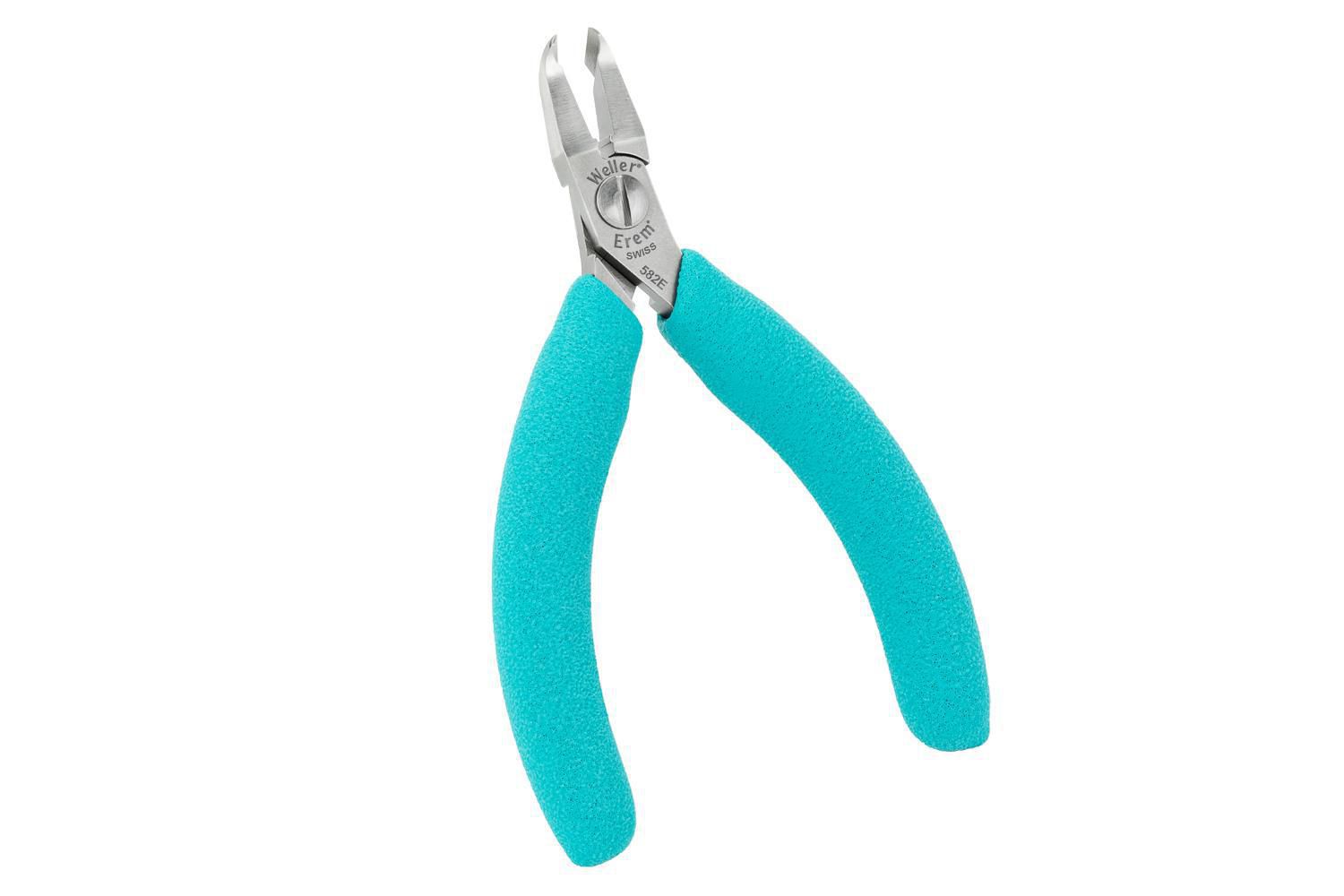 Denne ESD-sikre flush vinklet smalspids tip cutter, model 582E fra EREM, er en 4,5" (115 mm) præcisionsafbider i Weller Erem Series 500 Micro. 582E har hærdede skærekanter (>60 HRc) og er designet som et robust, genopslibeligt skæreværktøj med non-reflekterende overflade.Materiale og konstruktion