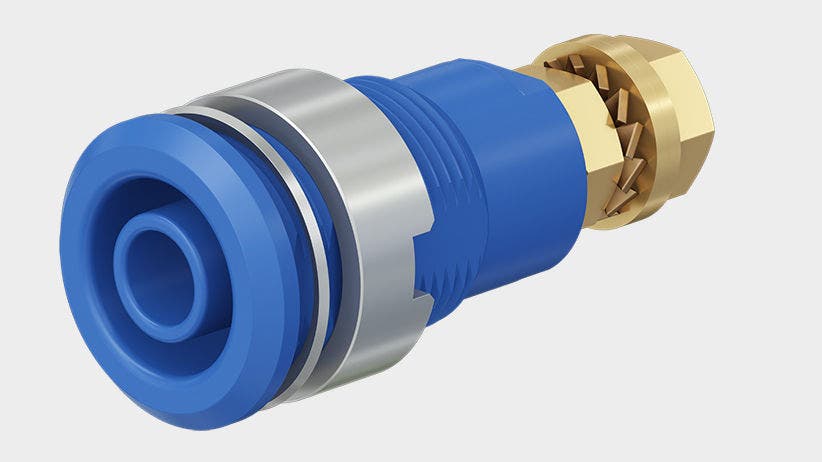 SLB4-G (varenr. 23.3020-28) er en isoleret, rigid 4 mm panelmonteret sokkel fra STAUBLI designet til at acceptere fjederbelastede 4 mm stik med stiv isolerende hylster. Produktet er udført med maskinbearbejdet messingkontakt og en guldbelagt kontaktflade samt isolationsmateriale specificeret som UL94 V-0. Soklen monteres ved at skrues ind i forborede paneler og har elektriske tilslutninger via en M4-gennemgående bolt samt et loddehul.