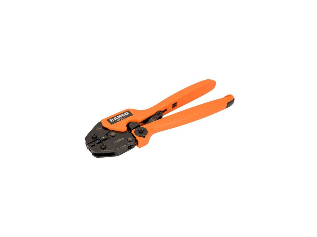 . Krympetang til isolerede stik, 0.5 - 6.0 mm²/AWG 20-10 (rød, blå, gul). Symetrisk oval krympeprofil. Stor styrke med konstruktion i hærdet stållegering. Unik mekanisme reducerer behovet for manuel kraft betydeligt sammenlignet med konkurrerende krympetænger. Skridsikker område holder værktøjet på plads, når det bruges på en arbejdsflade. Krympemekanisme med fuld cyklus for at sikre en ensartet og pålidelig krympning. Udløsermekanisme med låsemekanisme, der fjerner ujævnheder og forhindringer. Præcis excentrisk justering for ensartet overflade og mulighed for at kalibrere