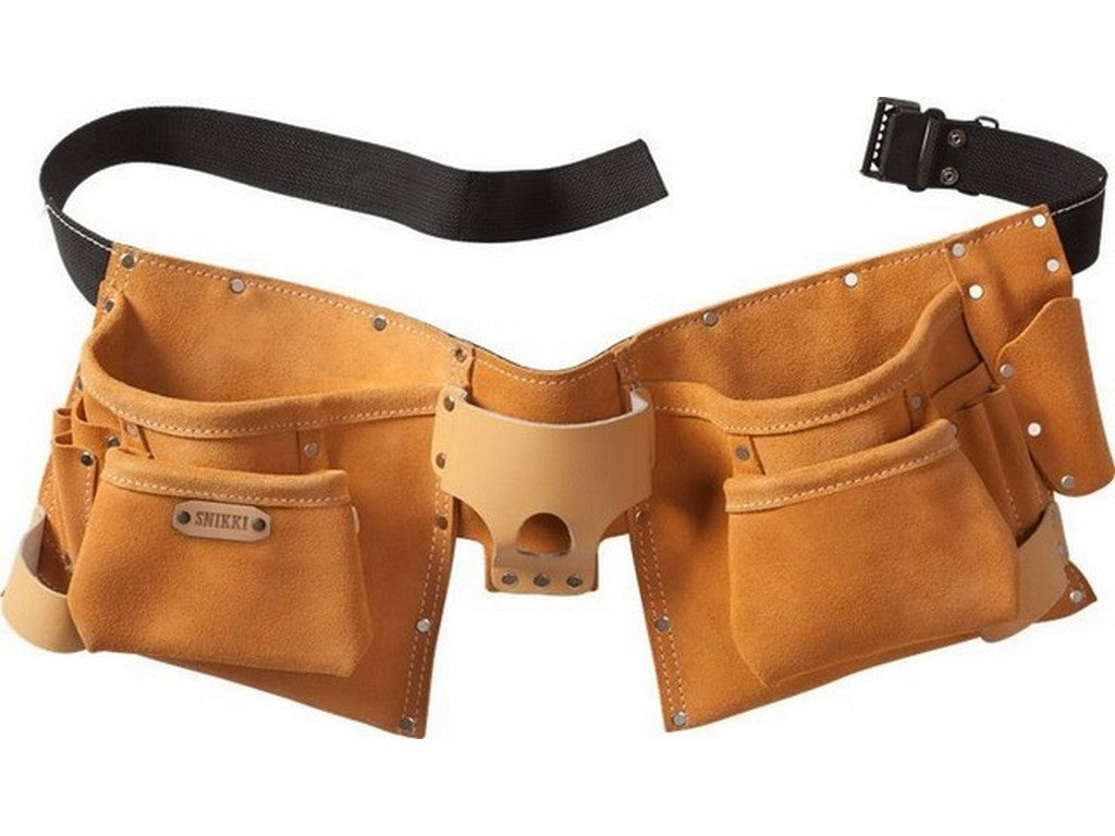 For altmuligmannen, snekkere etc. / fire lommer for spiker og skruer / Store lommer: H 170 x B 175 x D 85 mm / Syv små verktøylommer / Små lommer: H 100 x B 110 x D 35 mm / Holder for måling tape eller merkesnor / To hammerstropper / Forsterket med nagler / 40 mm nylonbelte / Spenne med lukking på siden / Beltelengde 122 cm.