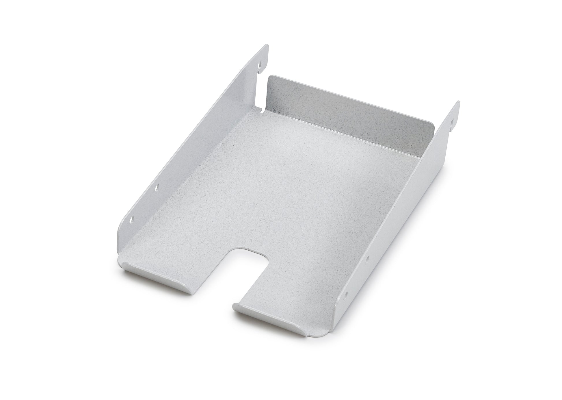 Denne ekstra stålhylde er udført til montering på en bin rail og er beregnet til opbevaring eller støtte af A5-dokumenter, en tape dispenser eller en håndscanner. Hylden er udført i epoxypulverlakeret stål (ramme) i farven RAL7035 (lys grå) og er ESD-kompatibel i henhold til producentens oplysninger. Produktet er kompakt og dimensioneret til mindre hjælpemidler, og fremstår som en fastmontérbar løsning til bin rail-monterede beholdere eller rails.Dokumentation